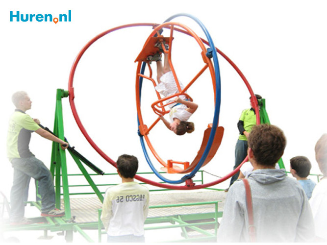 Er zijn twee verschillende uitvoeringen van de Girospace of Razende Roeland. Er zijn versies waarbij de deelnemer languit staat, maar er zijn ook versies te huur waarbij de deelnemer zit in een stoel die vergelijkbaar is met die uit een achtbaan. Met de Girospace draait het lichaam om 3 assen heen. Zorg ervoor je dat je niet misselijk wordt! Uitstekend om te huren voor een themafeest over de ruimte, astronauten, enzovoorts. Let op: de attractie is geschikt voor deelnemers vanaf 1 meter 65. Je kunt de Girospace bij verschillende verhuurbedrijven huren inclusief begeleider. Vaak staat de Girospace op een aanhanger, maar er zijn ook grotere versies van deze attractie. De lengte varieert van 3 tot 5,5 meter. De breedte en hoogte zijn maximaal 4 meter. Huur slim, huur een Razende Roeland via Huren.nl!