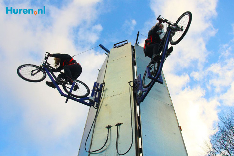 Ben je op zoek naar een echte blikvanger voor een evenement? Huur dan vertical bikes! Deze topattractie bestaat uit een fietstoren waaraan fietsen bevestigd zijn. Het is de bedoeling dat de deelnemers plaatsnemen op de fietsen om zichzelf vervolgens samen zo hard mogelijk omhoog te trappen richting een bel. Het team dat als eerste de bel luidt, heeft gewonnen. De attractie is voorzien van een automatische valbeveiliging en wordt gehuurd inclusief professionele begeleiding.