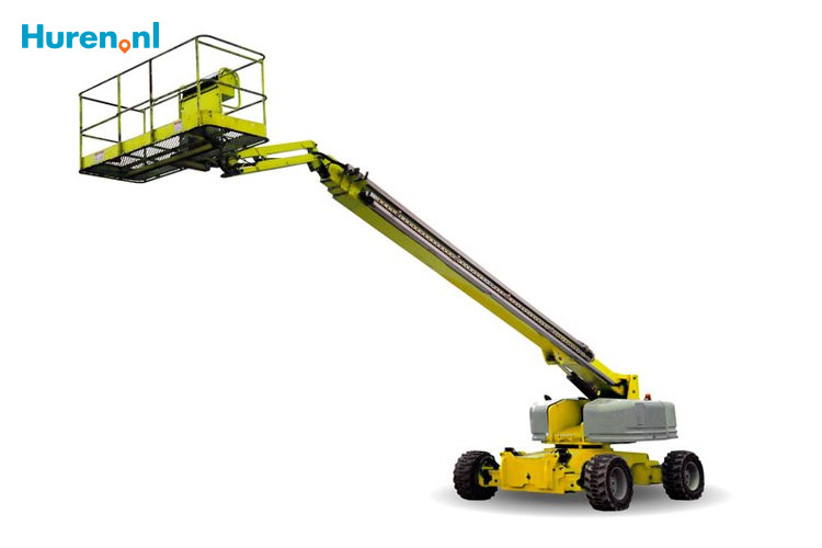 De telescoophoogwerkers die je op deze pagina vindt hebben een werkhoogte tussen de 10 en 56 meter. De reikwijdte, ook wel horizontaalbeik genoemd, varieert van 6,5 tot ongeveer 25 meter. De maximale werklast van de telescoophoogwerkers die je kunt huren loopt van 200 tot 450 kilogram of meer. De hoogwerker is in de meeste gevallen zelfrijdend en kan vaak op volle hoogte verreden worden. Op deze manier kan je de meeste werklocaties eenvoudig bereiken. De telescoophoogwerker loopt bijna altijd op een dieselmotor en heeft een zeer krachtige aandrijving. Wil je de telescoophoogwerker huren voor binnengebruik? Kies dan voor een hoogwerker die op elektriciteit werkt (accu), zodat je geen uitlaatgassen creëert met een dieselmotor. Houdt tijdens het vergelijken van de verhuurbedrijven rekening met eventuele bijkomende kosten voor transport, brandstof en verzekeringen. Ben je op zoek naar een telescoophoogwerker voor ruw terrein, in dat geval is het huren van een rupstelescoophoogwerker een betere optie.