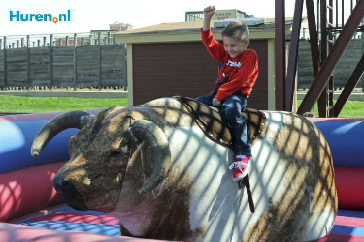 Bij sommige verhuurbedrijven is de rodeo alleen te huur in combinatie met begeleiding. Om de veiligheid te garanderen passen de begeleiders de snelheid van de rodeostier aan op de leeftijd en ervaring van de persoon die rodeo rijdt. De rodeo die je huurt is voorzien van een opblaasbaar valkussen. Dit betekent dat er stroomvoorziening aanwezig moet zijn op de huurlocatie, om zo de blower aan te sluiten die het luchtkussen opblaast en vol houdt. Wil je in de buitenlucht een rodeo houden? Informeer dan bij het verhuurbedrijf naar de mogelijkheden. Vraag bijvoorbeeld of je een aggregaat kunt huren bij het verhuurbedrijf, zodat je ook buiten toegang tot stroom hebt.