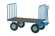 Een handtrekwagen wordt veel gehuurd om zware dozen of divers materiaal ergonomisch mee te transporteren. Door de draaischamelbesturing van de trekwagen kan de voorste as draaien. Dit zorgt ervoor dat de transportwagen erg wendbaar is. Wat de handtrekwagen een ideaal transportmiddel maakt om te gebruiken in de kleinere ruimtes. De wagen heeft veel draagvermogen dankzij de stabiele maar lichte staalconstructie. Daardoor hét ideale hulpmiddel om te gebruiken tijdens een verhuizing of op de bouwplaats.